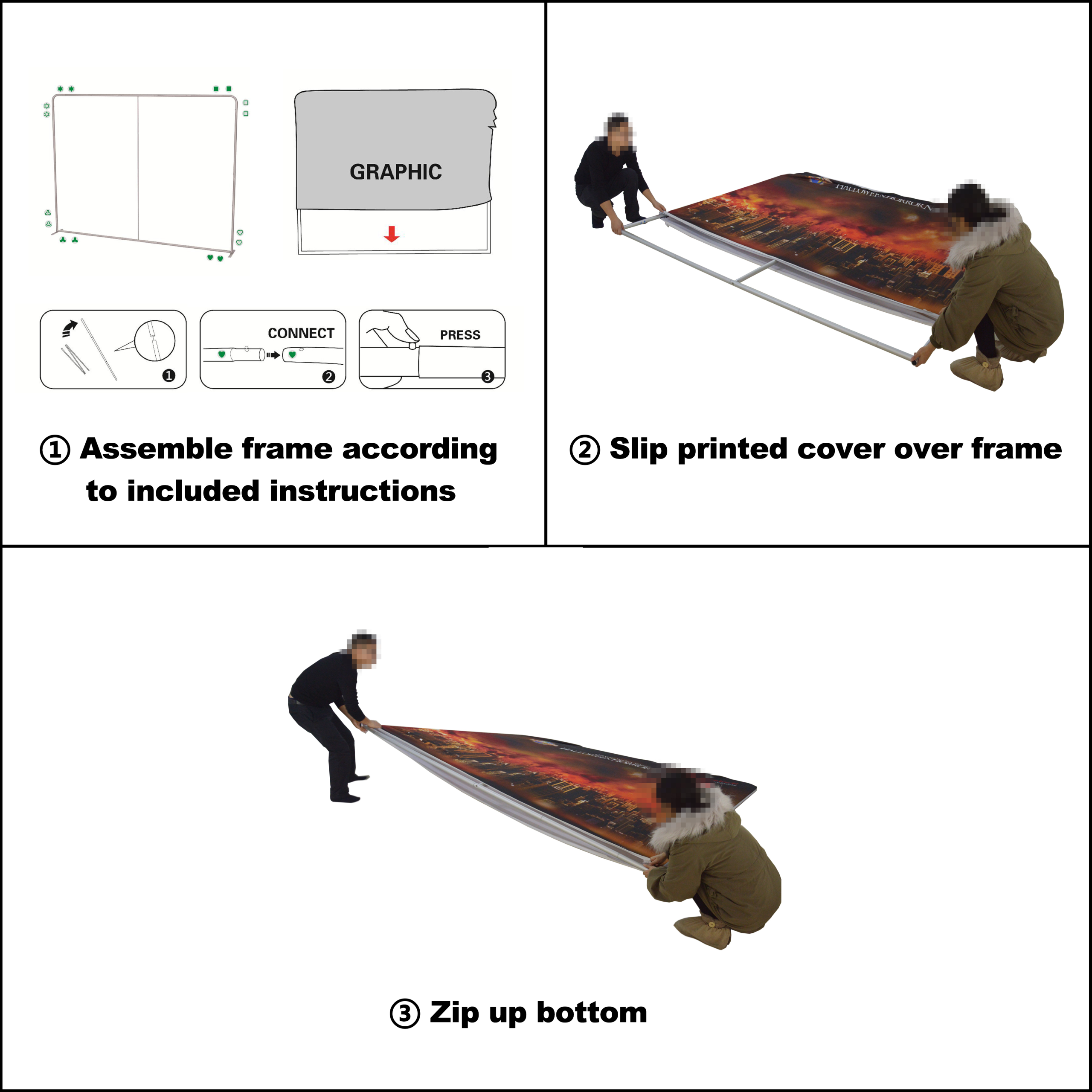 Create a custom tradeshow display with our new Stretch Table Covers with Zipper. Made of 240g Elastic Polyester, that will give your booth a professional appearance. The tablecloth can be sublimation printed with all colours and different patterns. Rear zip for easy storage of your belongings while keeping them private and secure. Rubber foot sets on the inside are attached to the table legs to keep the tension tight. It's ideal for promotional events and tradeshows to add an extra visual element to your display.