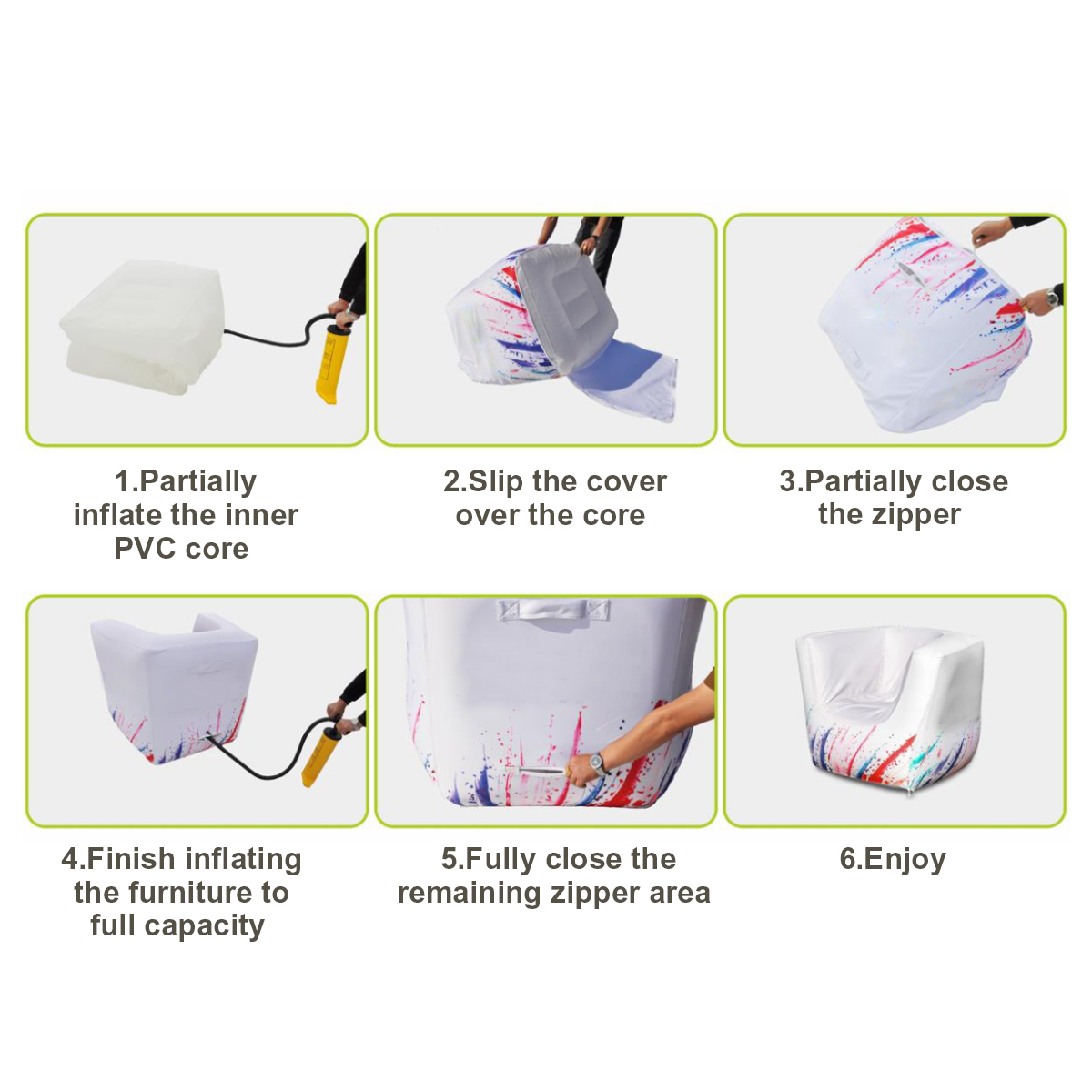 - Colour selection: Green, Orange, Pink, White