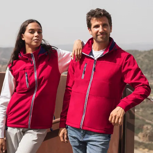 Jacket made of durable and breathable 300g/m2 soft shell material.