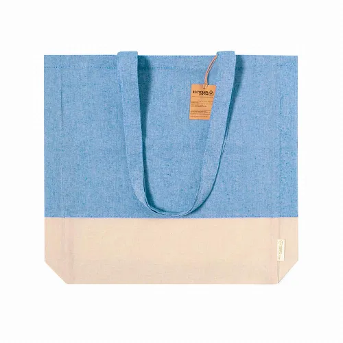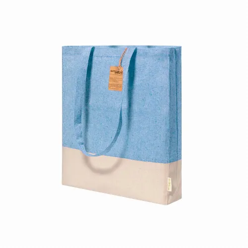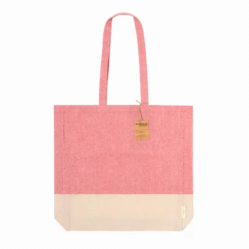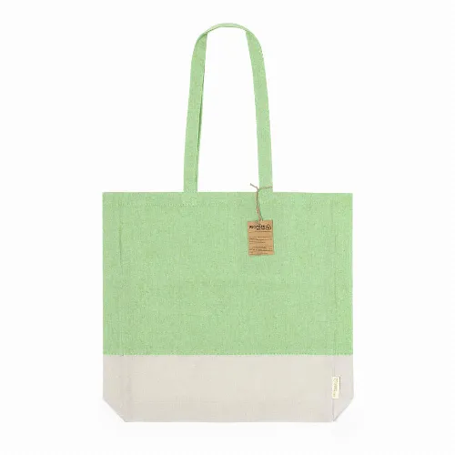 Long handles of 70cm with reinforcement, stitched finish and gusset. Recycled cotton label and resistance up to 8 kg in weight. Available in a wide range of eco colours, combined with a natural base.