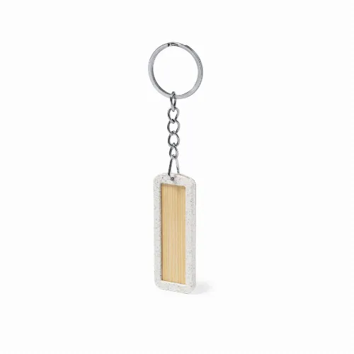 Eco keyring made of bamboo, with a wheat straw frame.