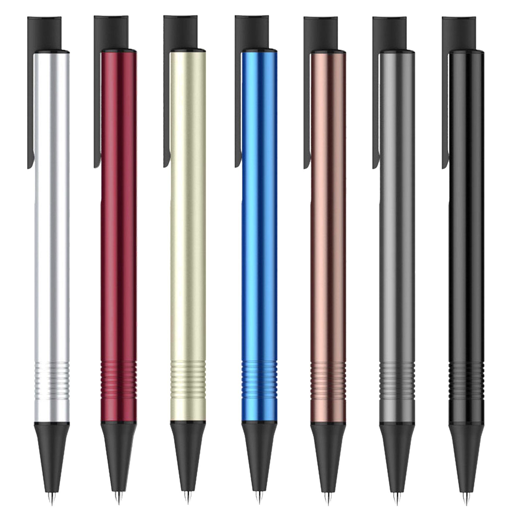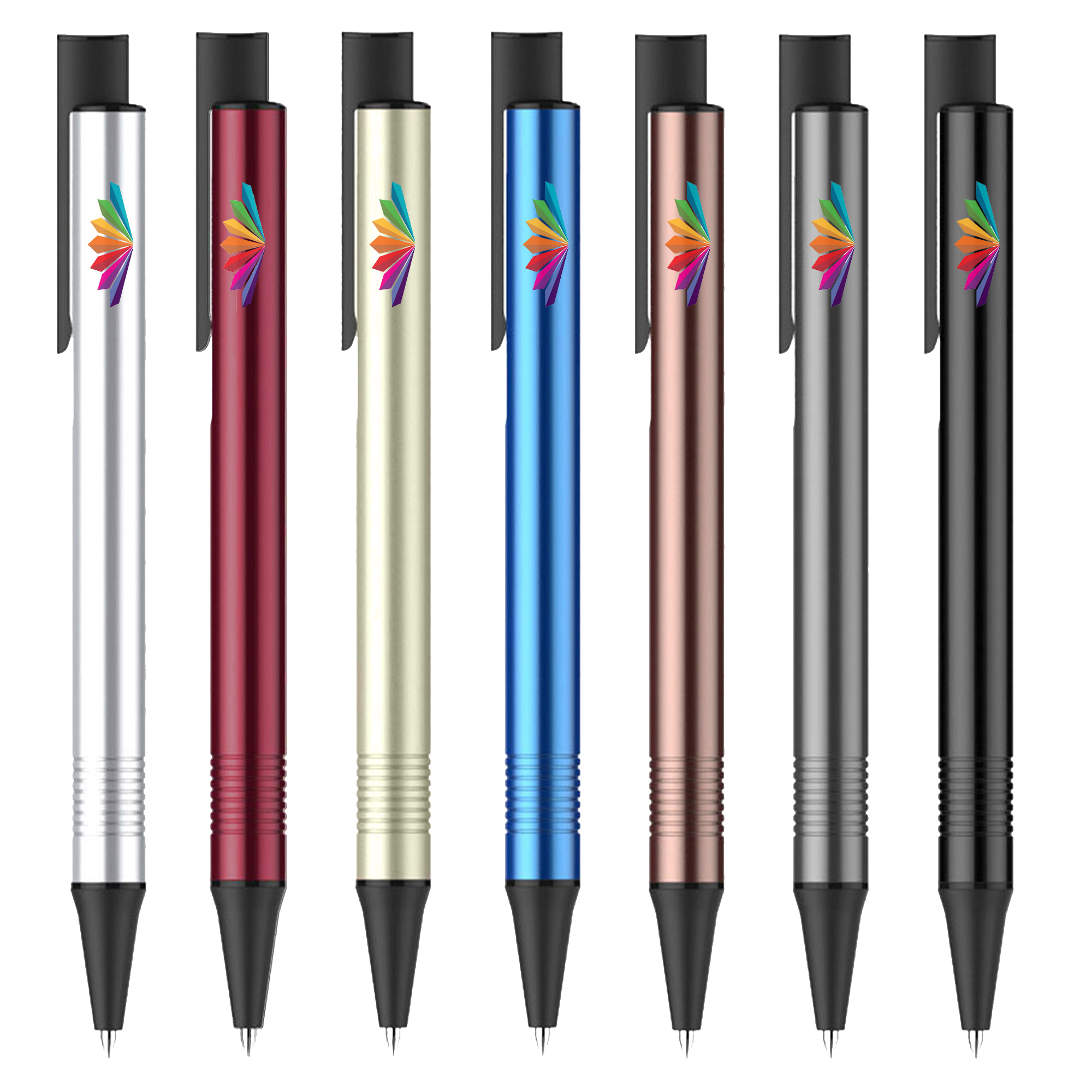 Aluminium Stylish design pen with black plastic click and tip wide printing area. Click action with plastic Parker-Type German manufactured black ink refill 1200 meters writing distance tungsten carbide ball provides you with quality writing.