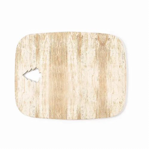Rectangular cutting and serving board with Christmas tree die-cutting.
