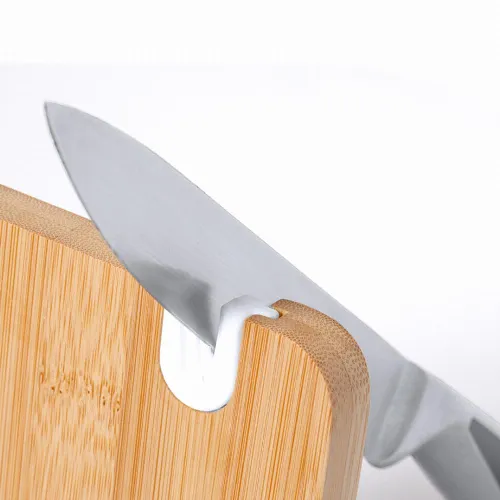 With practical knife sharpener on the edge for an always precise cut and handle for easy operation. Individually packed in a kraft design box.Materials such as bamboo encourage the use of natural raw materials, reducing pollutant emissions. In addition, bamboo comes from a highly resistant and versatile plant, with rapid growth and regeneration, making of it an excellent alternative to traditional wood.