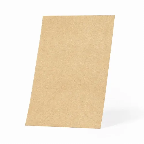 Card made of recycled cardboard and kraft finish.