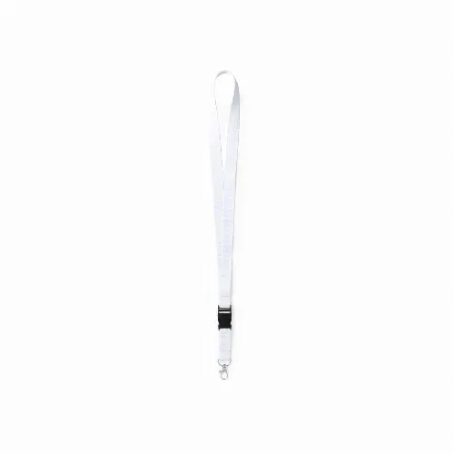 Lanyard in resistant polyester with multifunction buckle closure and metal hook.