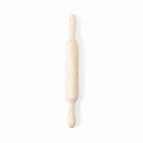 Rolling pin in natural wood, with comfortable side handles.