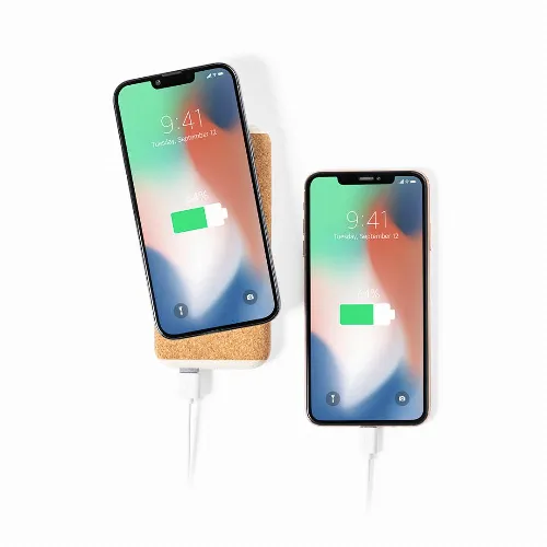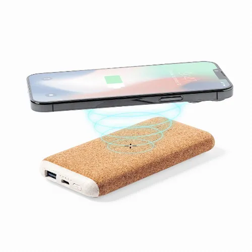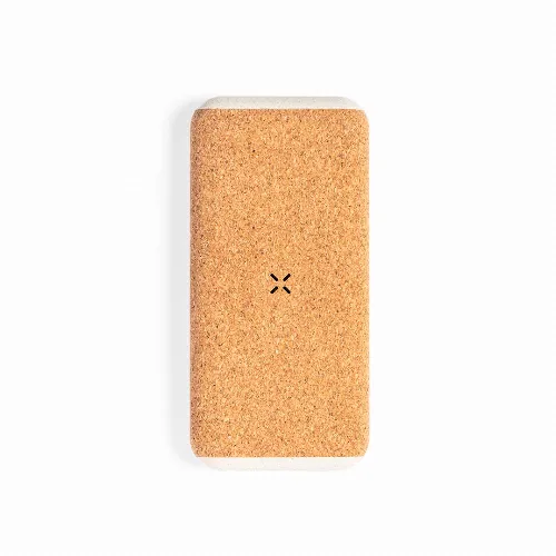 External auxiliary battery in nature line, made of a combination of natural cork and wheat straw.