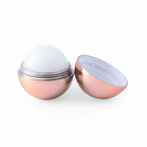Sphere of lip balms in elegant colors golden, silver and pink golden.