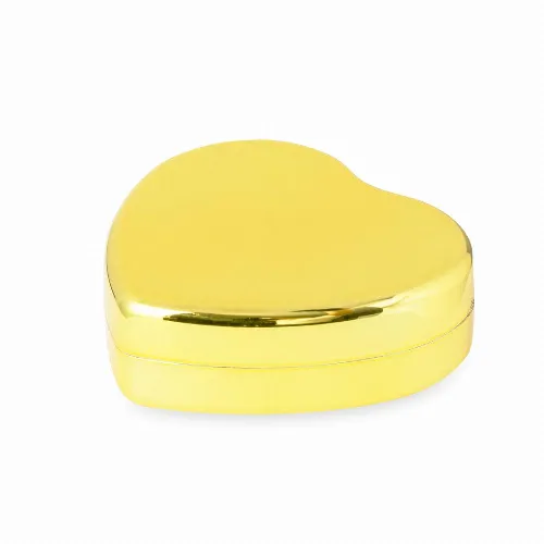Lip balm in elegant gold, silver and rose gold colours, in the shape of a heart.