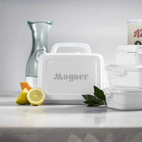 Made in Europe, with Food Grade certification, guaranteeing safety when food comes into contact with the material used to manufacture the product. Square format, with practical carrying handle and safety lock.