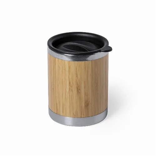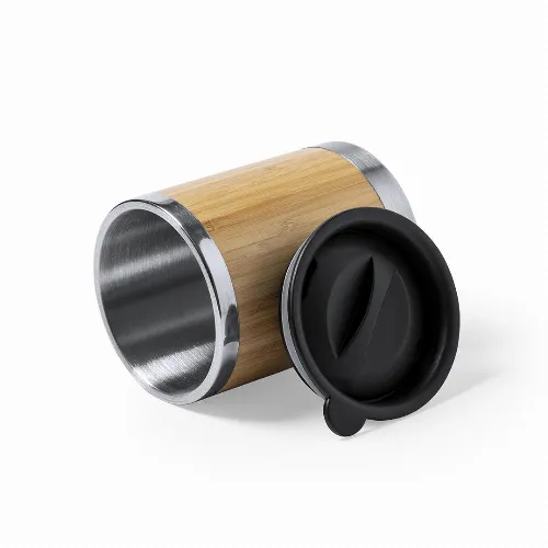 Bamboo and stainless steel double walled body for better and longer lasting temperature conservation. With an original black dosing cap with easy-opener. It is ideal for your desk, table, or any surface where you can enjoy your favorite drink.