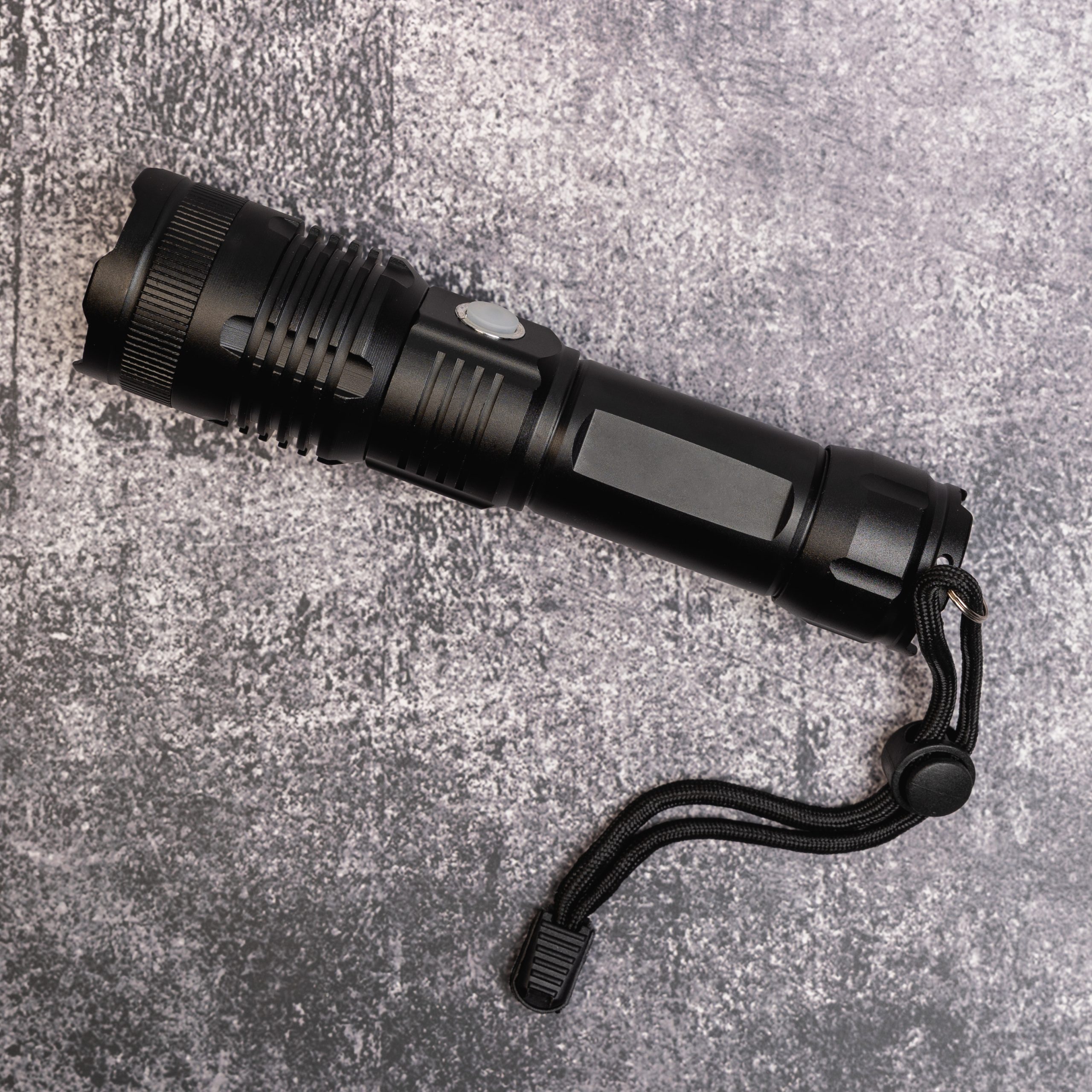 Introducing the Lumi Rechargeable Torch, your eco-friendly and powerful lighting solution. Crafted from recycled aluminium, this torch features a bright SMD LED bulb with a brightness level of 720 lumens, capable of illuminating objects up to 300m away on the narrowest beam setting. Powered by a rechargeable Li-Ion battery (3000mAh), the torch comes with a black wrist lanyard for easy carrying and a black Type A to Type C cable for convenient charging. Packaged in a sleek black magnetic close gift box with an instruction sheet, the Lumi Torch is ideal for both everyday use and as a thoughtful gift. Please note, the torch is water-resistant but not waterproof and should not be submerged.