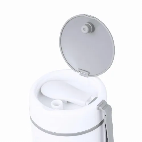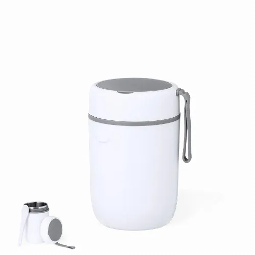 Safety closure with screw-on lid, with foldable cuttlery and carrying handle. Presented in attractive design box.