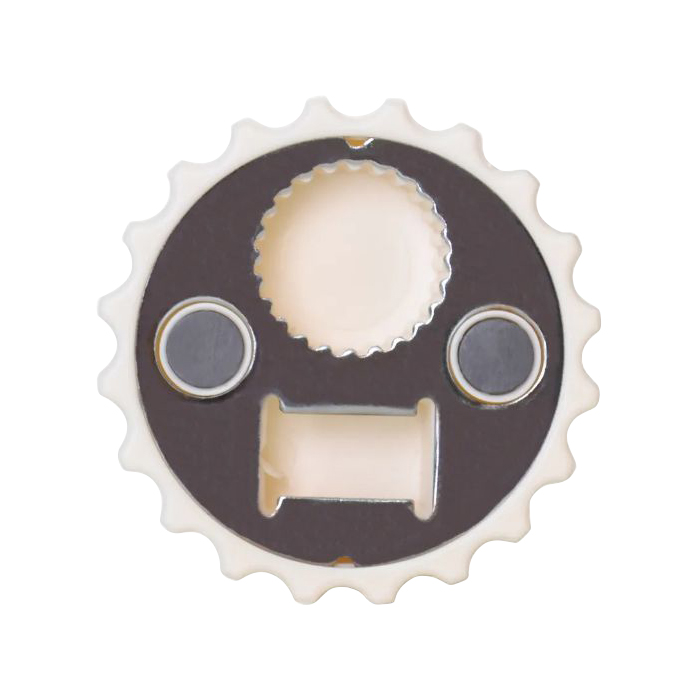 The Magnetic Dual Bottle Opener has 2 bottle openers in one cool product! Whether you are holding a beer bottle, or a water bottle, open it with ease! The magnetic chip allows it to be stuck on your fridge, for easy access! Made from ABS, and can be customized into any color or finish.