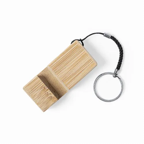 Made of resistant bamboo with a lacquered finish, with a resistant cord and metal ring.