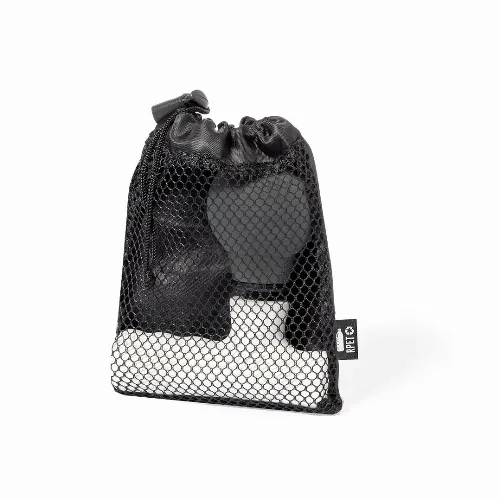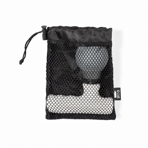 Helps to relax muscles, relieve the effects of training, release tension and revitalise the body. With two intensity settings. Long-lasting 800 mAh rechargeable battery – USB cable included-. With user manual in English and Spanish. Presented in a RPET polyester case with drawstring closure, made from recycled plastic to promote the reuse of plastic waste and contribute to the sustainability of the planet. Distinctive RPET label on the pouch.