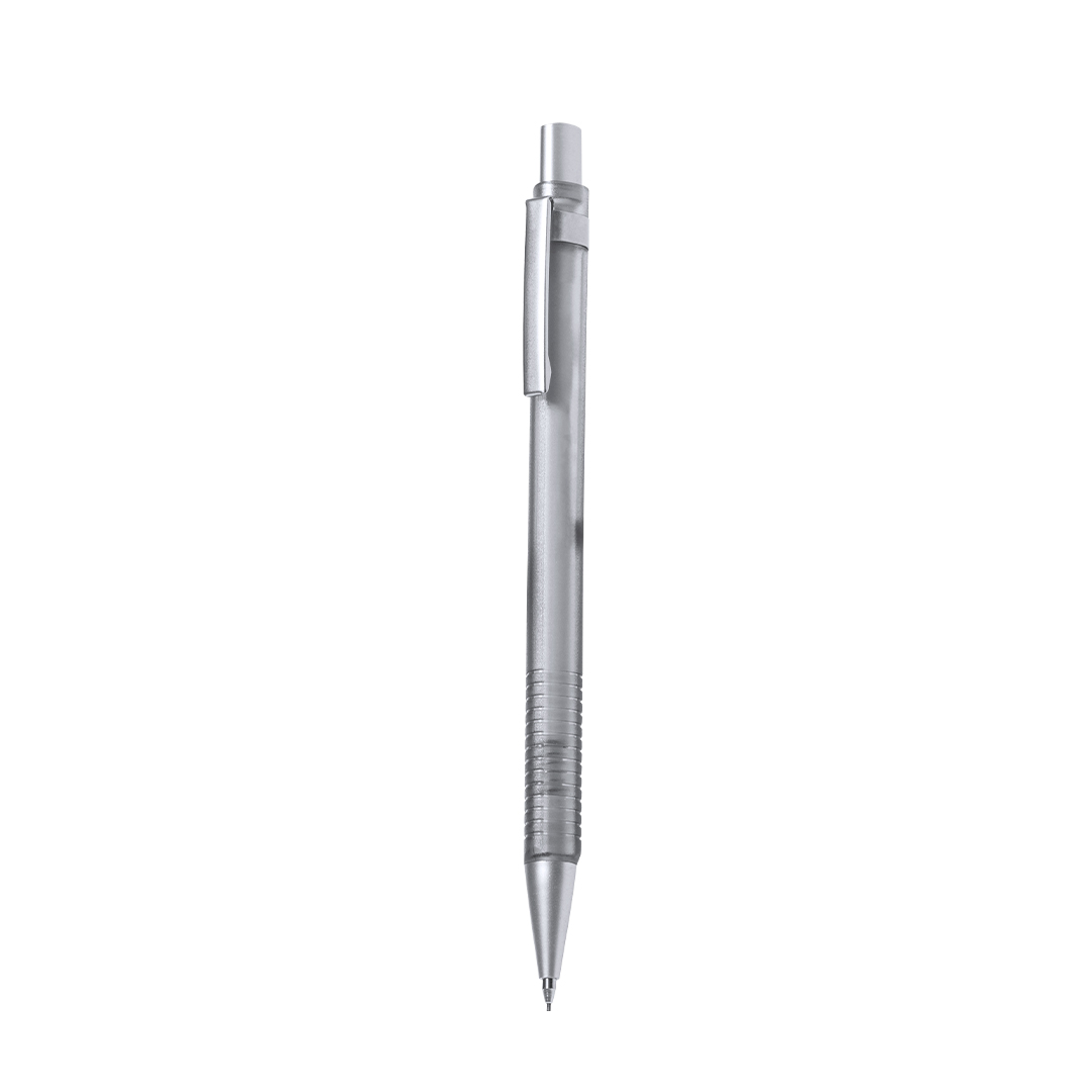 Translucent grey barrel and matching textured grip, with chrome-plated push button, clip and tip. With eraser and 0.7 mm leads included.