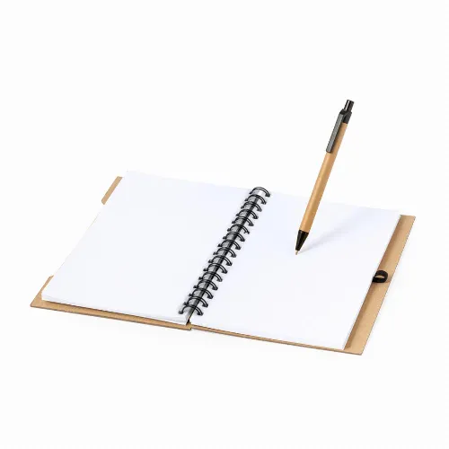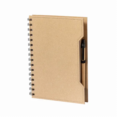 Including a ring notebook with rigid covers made of recycled cardboard and with stitching in contrast colors. 80 plain inner sheets in natural colour, 25 large sticky notes and 100 mini sticky notes in 4 different pastel colours. Including a practical pen holder and a ball pen made of recycled cardboard and in blue ink. Presented in an individual paper bag.Recycled cardboard comes from the reuse of manufacturing surpluses and paper recycling at the end of its lifespan, making it an ecological and sustainable canvas.