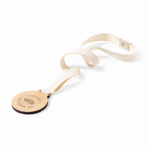 Lanyard made in cotton, with wheat straw safety clasp at the neck.