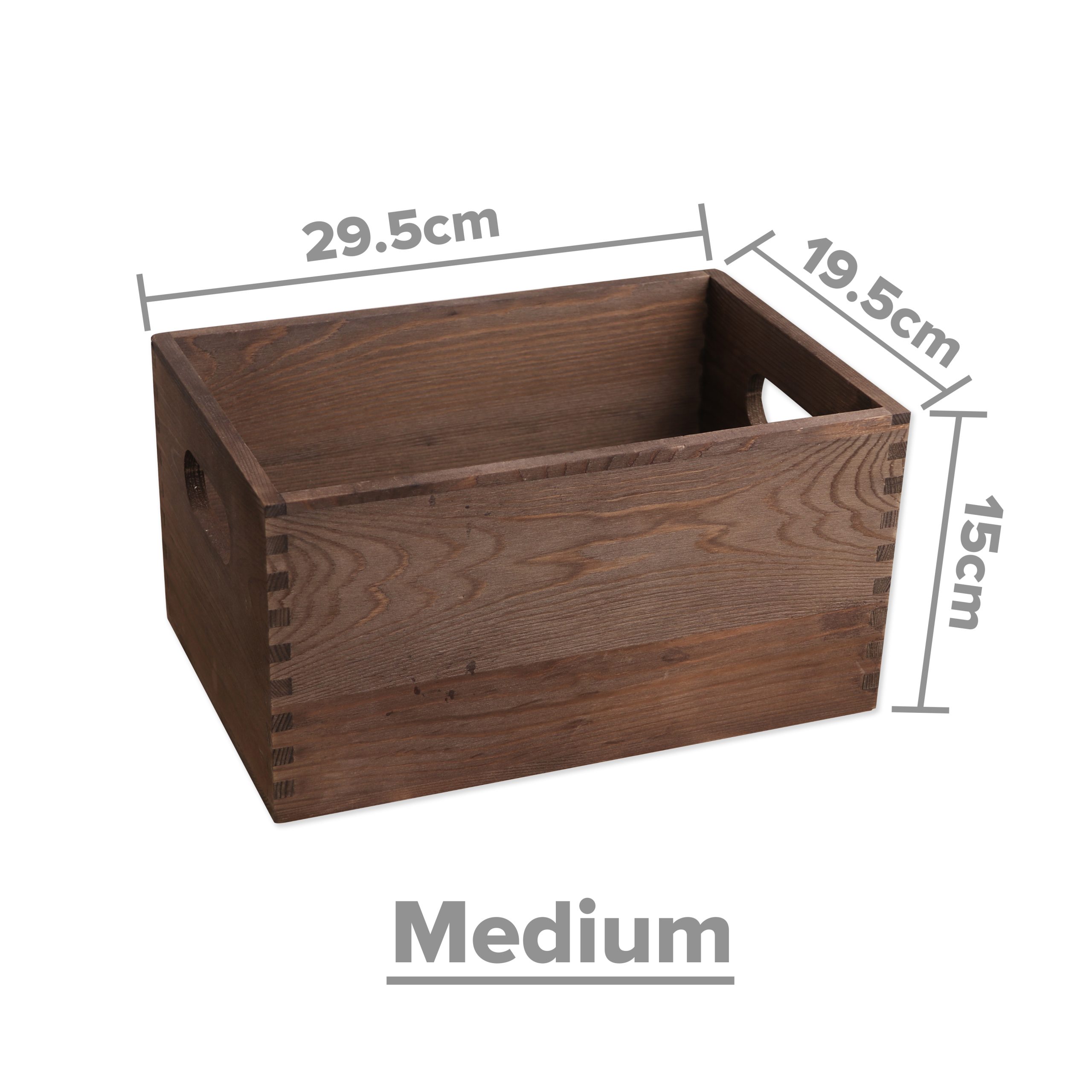 This medium storage box comes in three colours: wood, vintage and varnish. The box body can be customised with your company’s logo. This storage box is sturdy, stylish and versatile