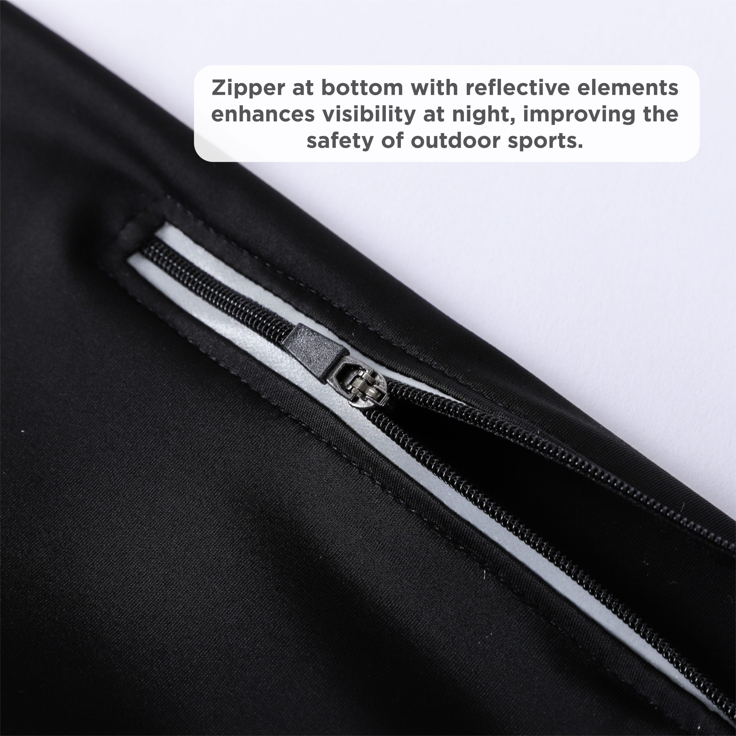 - The zipper at bottom with reflective elements enhances visibility at night, improving the safety of outdoor sports