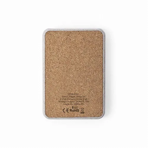 Housing in combination of natural cork and wheat straw materials. 5,000 mAh capacity and charge status indicator. Double USB output and Type C input. With large printing surface and presented in an attractive eco design box. The capacities shown in all our external auxiliary batteries are real, all of them incorporating non-recycled, grade A batteries, with a service life of at least 500 charging cycles, and complying with CE regulations. In addition, they are manufactured according RoHS standards, and in compliance with the following safety requirements: Power bank overcharge protection system. Complete discharge protection system, which increases the durability of the power bank. Blocking system to prevent short circuits. Constant charging transfer system, in accordance with the capacity of the target device.