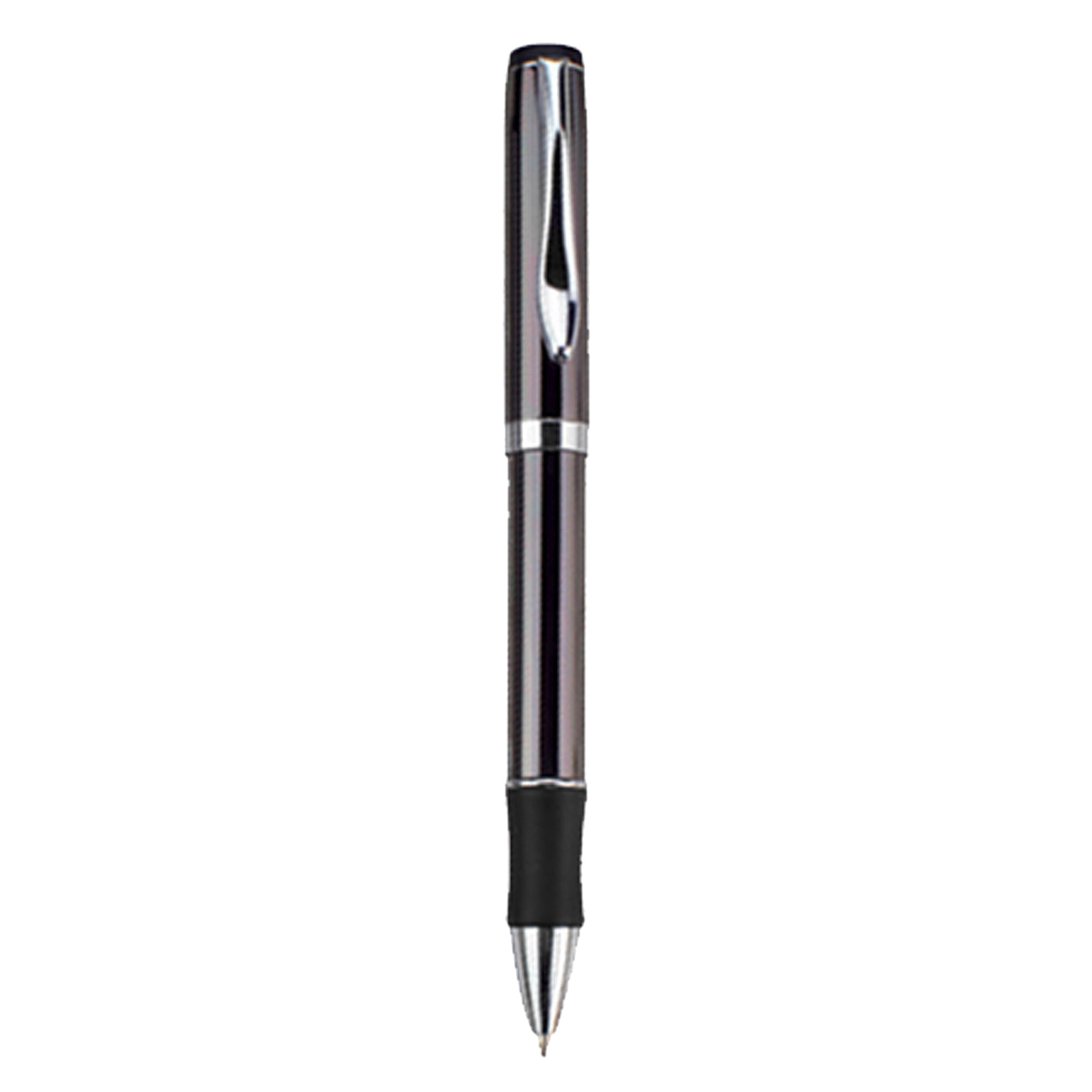 Quality twist action metal pen made of copper shiny silver chrome fittings with a curved rubber grip engraves to champagne colour. It has a metal Cross-Type German manufactured black ink refill 1800 meters writing distance tungsten carbide ball provides you with quality writing.