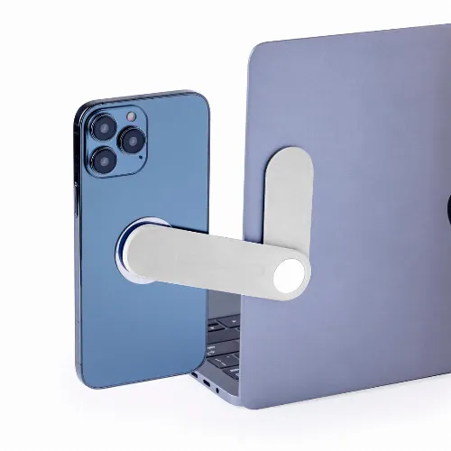 Foldable magnetic smartphone holder with minimalist design and elegant finish.