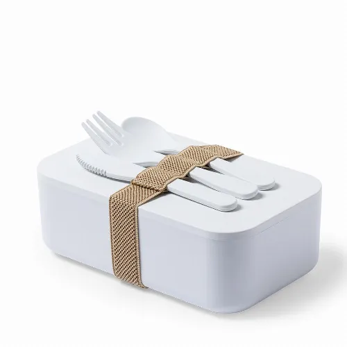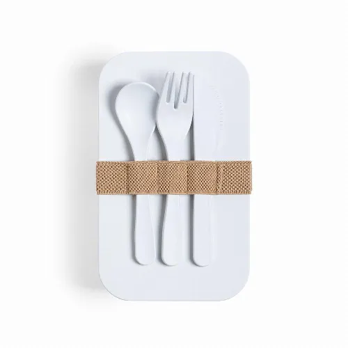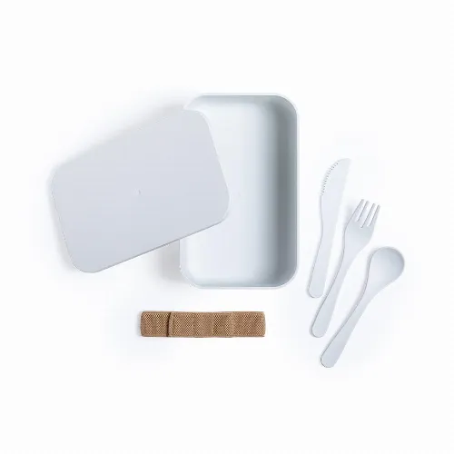 1L capacity, including safety belt with fork, spoon and knife. Presented in an individual bag. Product made of PLA material, from renewable raw materials, with important properties such as versatility and resistance, highlighting among them the compostability.