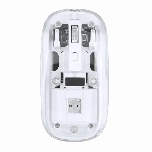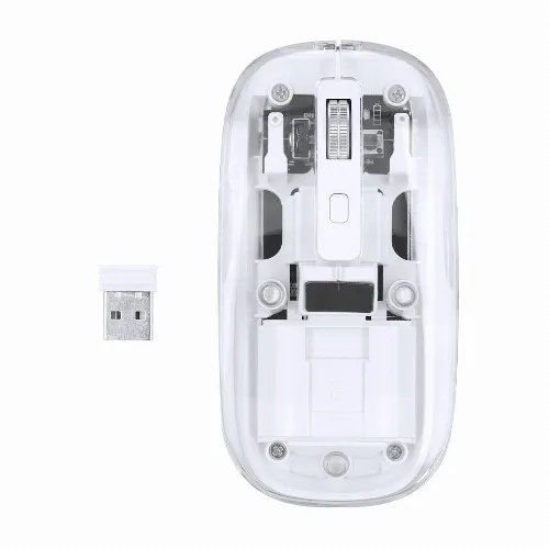 Wireless optical mouse in an original design, with a transparent showing the internal components of the device.