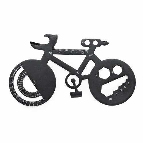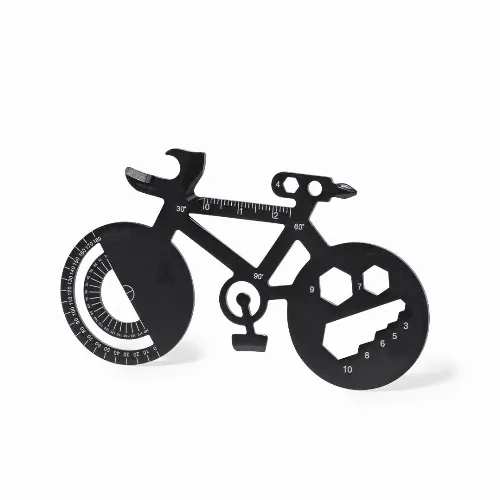 Handy and useful multi-tool in stainless steel, bicycle shaped.