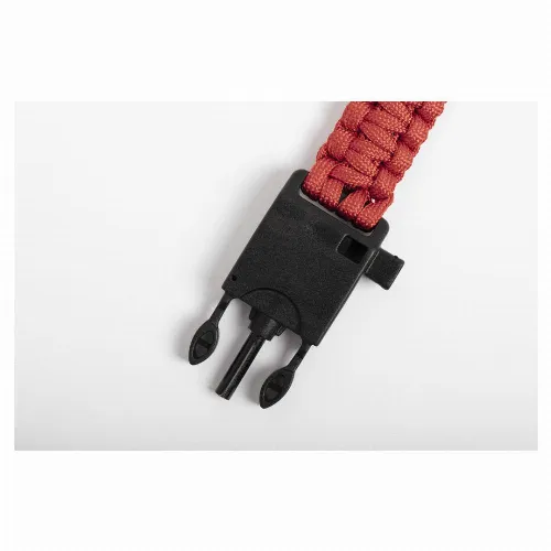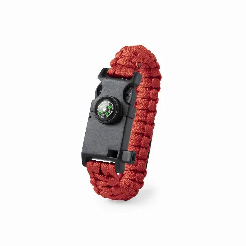 In resistant nylon material, with 5 functions: armband, compass, whistle, flint scrapper and opener. Available in a wide range of colors, with safety buckle closure.