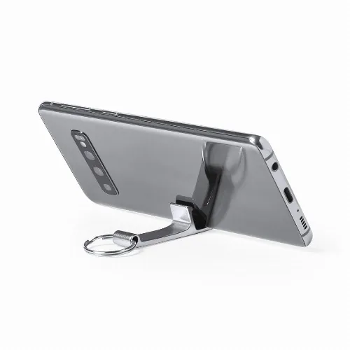 Keyring holder for smartphone and tablet made of aluminum with matte finish, specially designed for laser engraving.