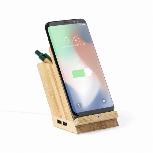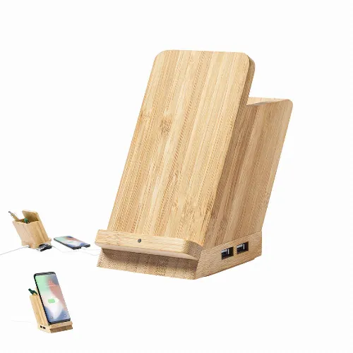 Function pen holder and smartphone holder, with 5W wireless charger and USB port (4xUSB 2.0). Compatible with smartphones with wireless charging technology. Including 1 metre length, Micro USB cable in white color. Presented in an attractive eco-design box. Instruction manual available in English and Spanish.