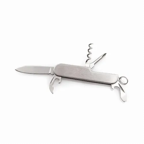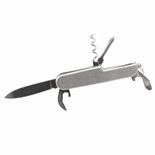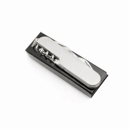 Includes knife, openers, screwdriver and keychain. Presented in an individual box.