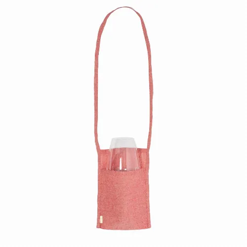 Versatile, with long handle and pocket to carry cups, glasses or any object comfortably. Available in different colours and made of soft Recycled cotton with distinctive label.