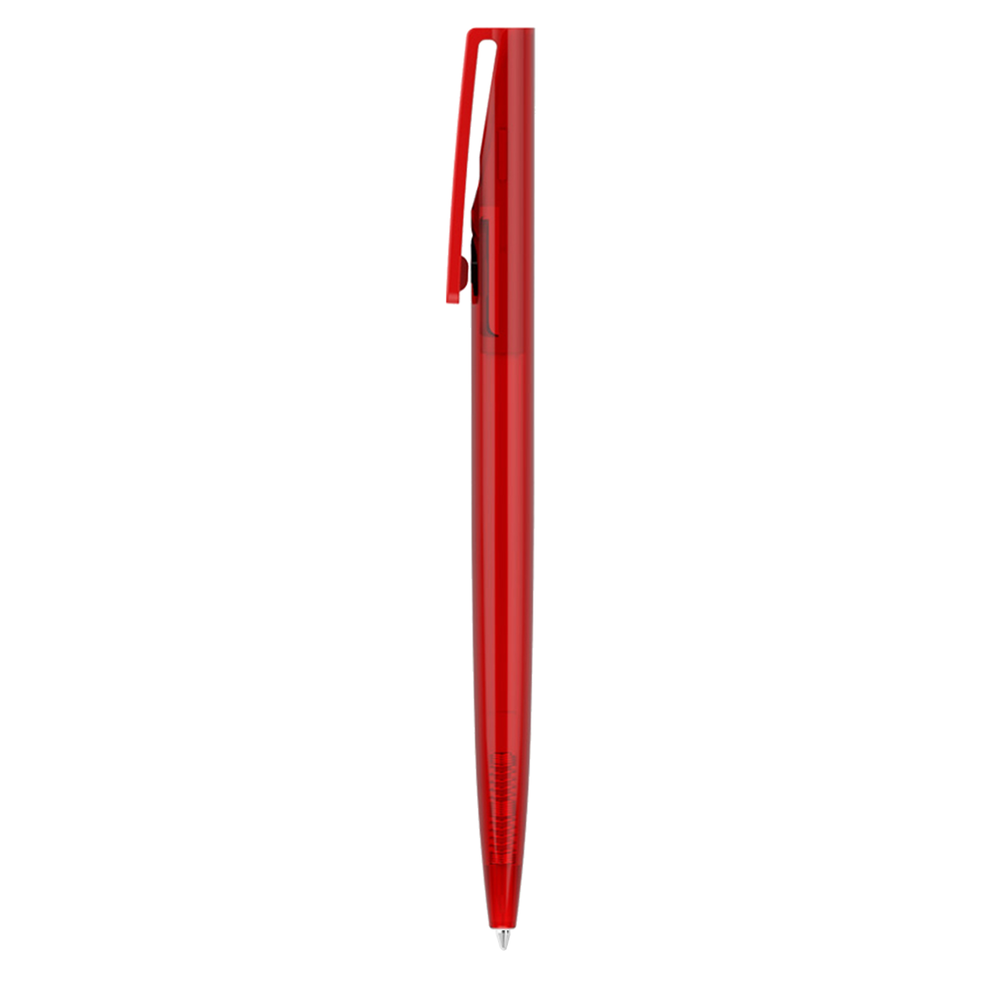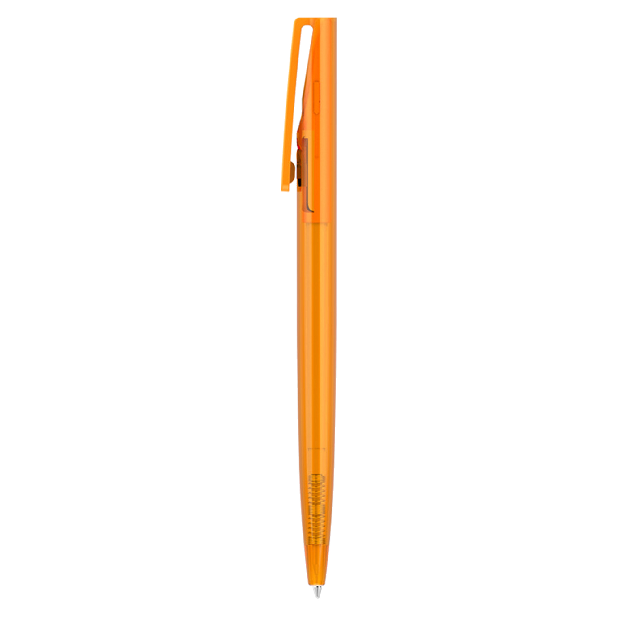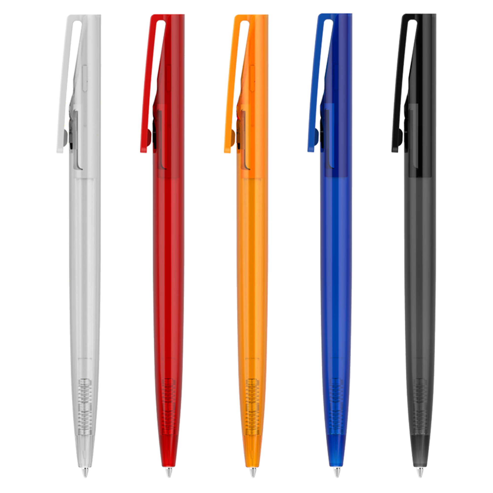 Click action plastic transparent pen. It has high quality Parker-Type German manufactured black ink refill 1800 meters writing distance tungsten carbide ball provides you with quality writing. Comes standard with black ink but blue ink is available on request at additional costs.