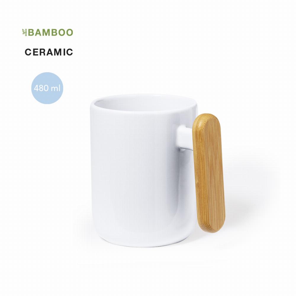 Ceramic mug with 480 ml capacity, in elegant white color.