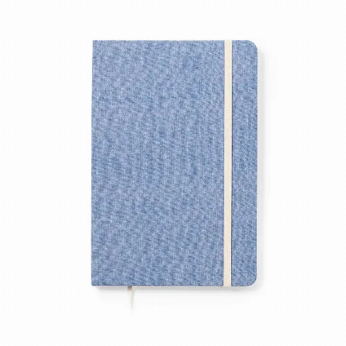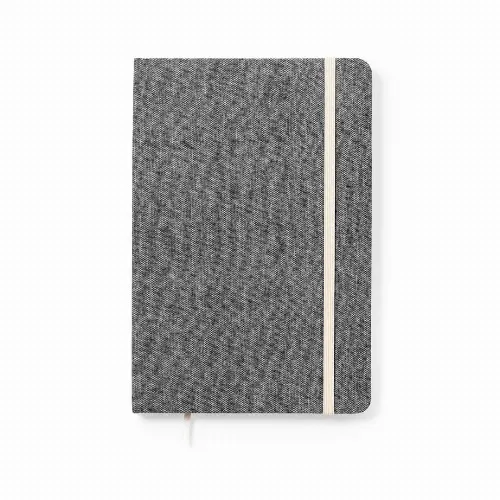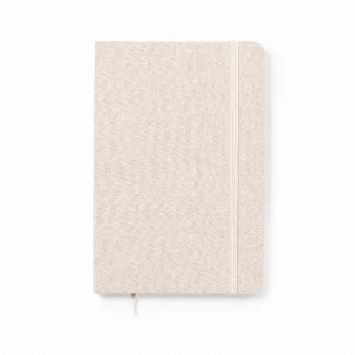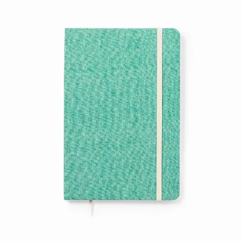 With hard covers and elastic band in contrasting colour. Inside with 100 plain sheets and fabric bookmark. Available in a wide range of colours, with recycled cotton logo on the back cover. GRS (Global Recycled Standard) certification available, guaranteeing the recycled origin of the material used to manufacture the product.