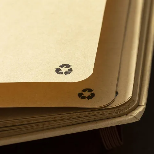 60 plain sheets with kraft finish and recycled emblem.
