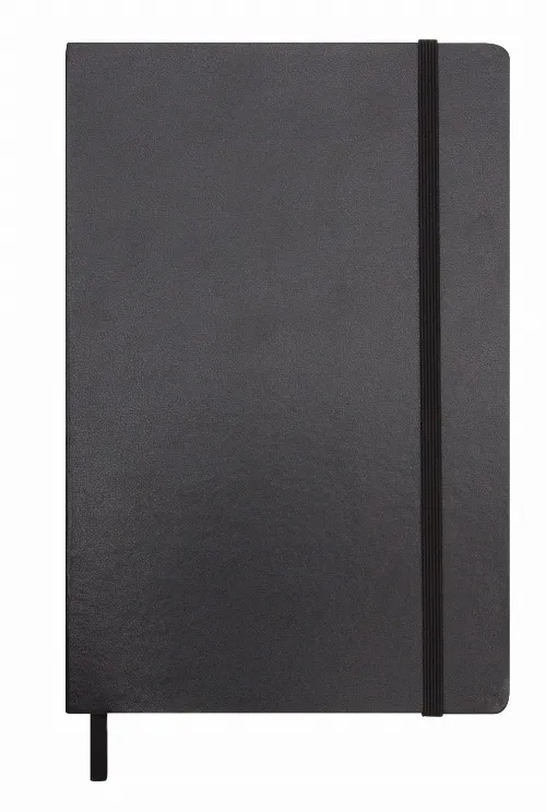 A5 Leather look cover notebook with expandable pocket on back page and elastic band closure