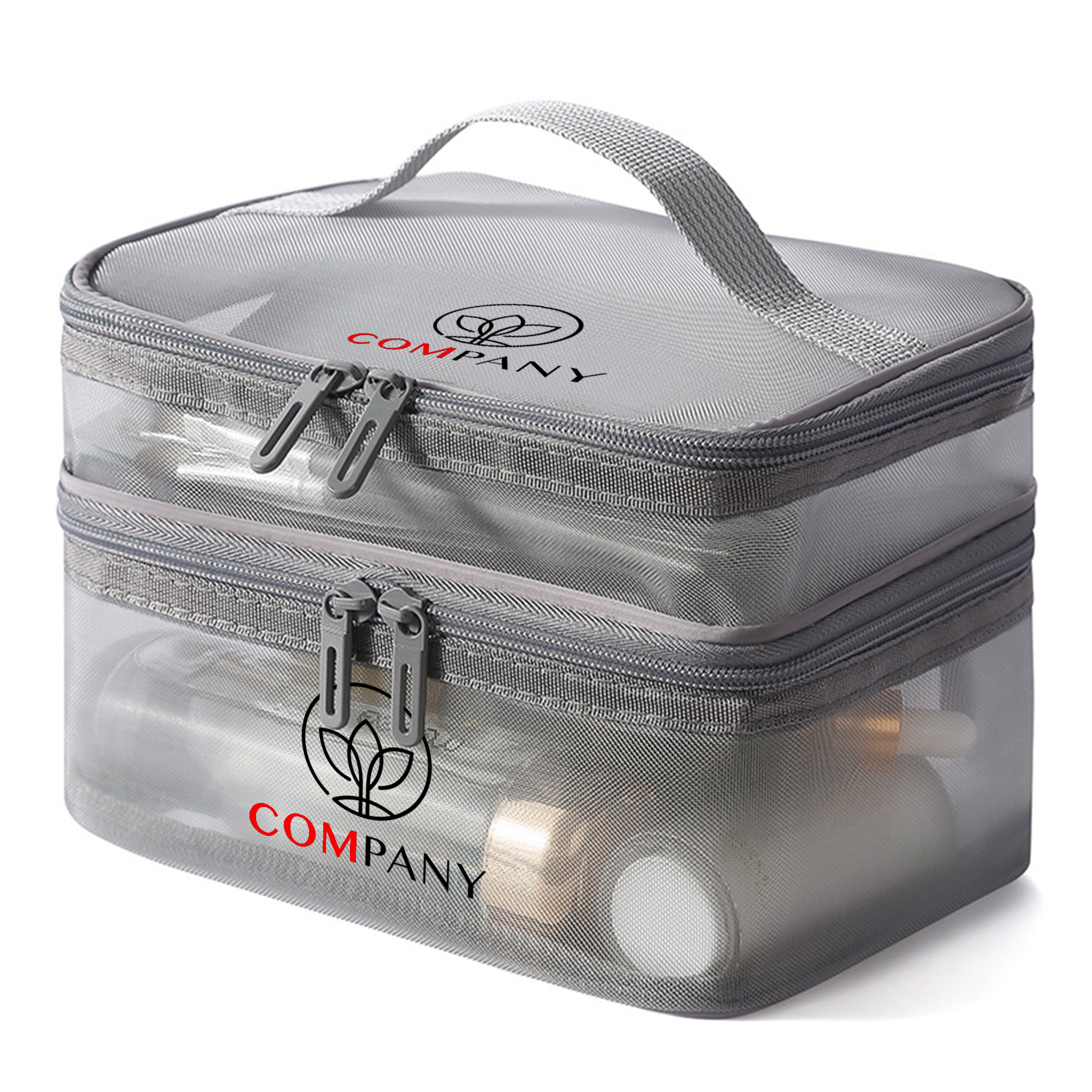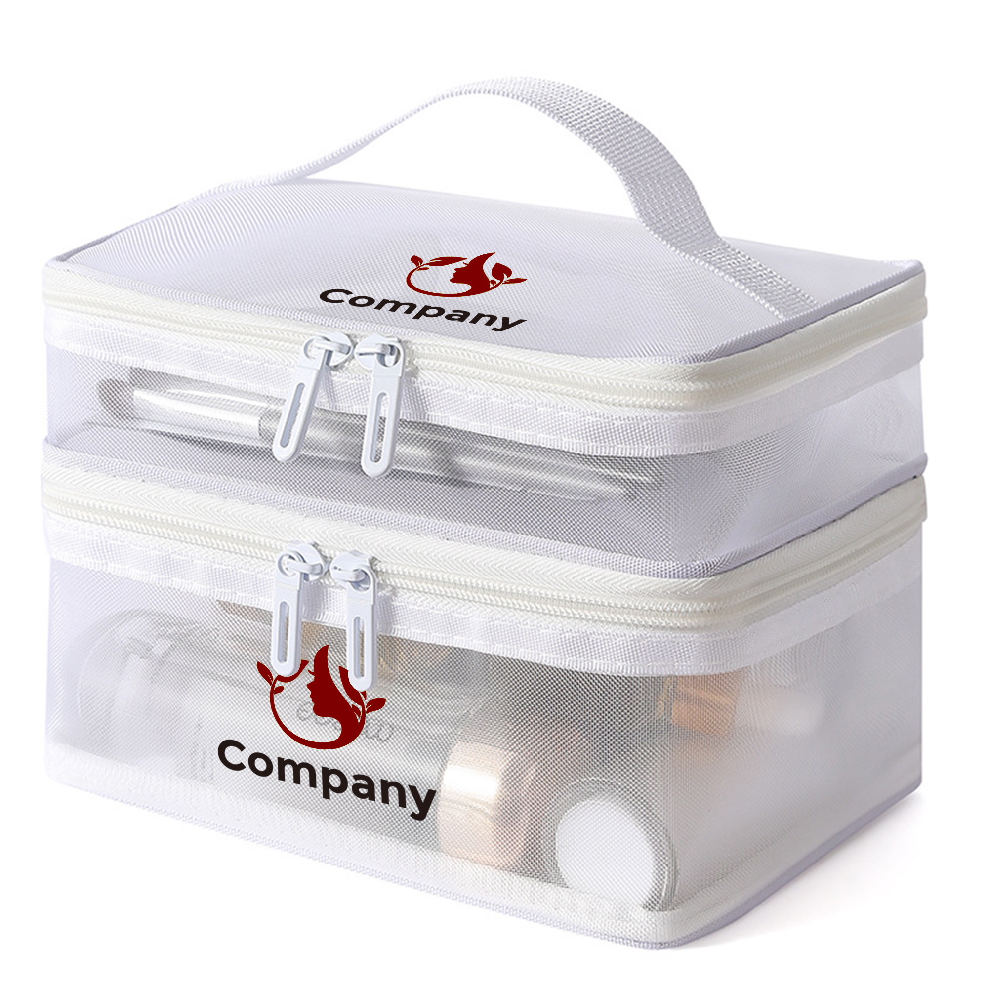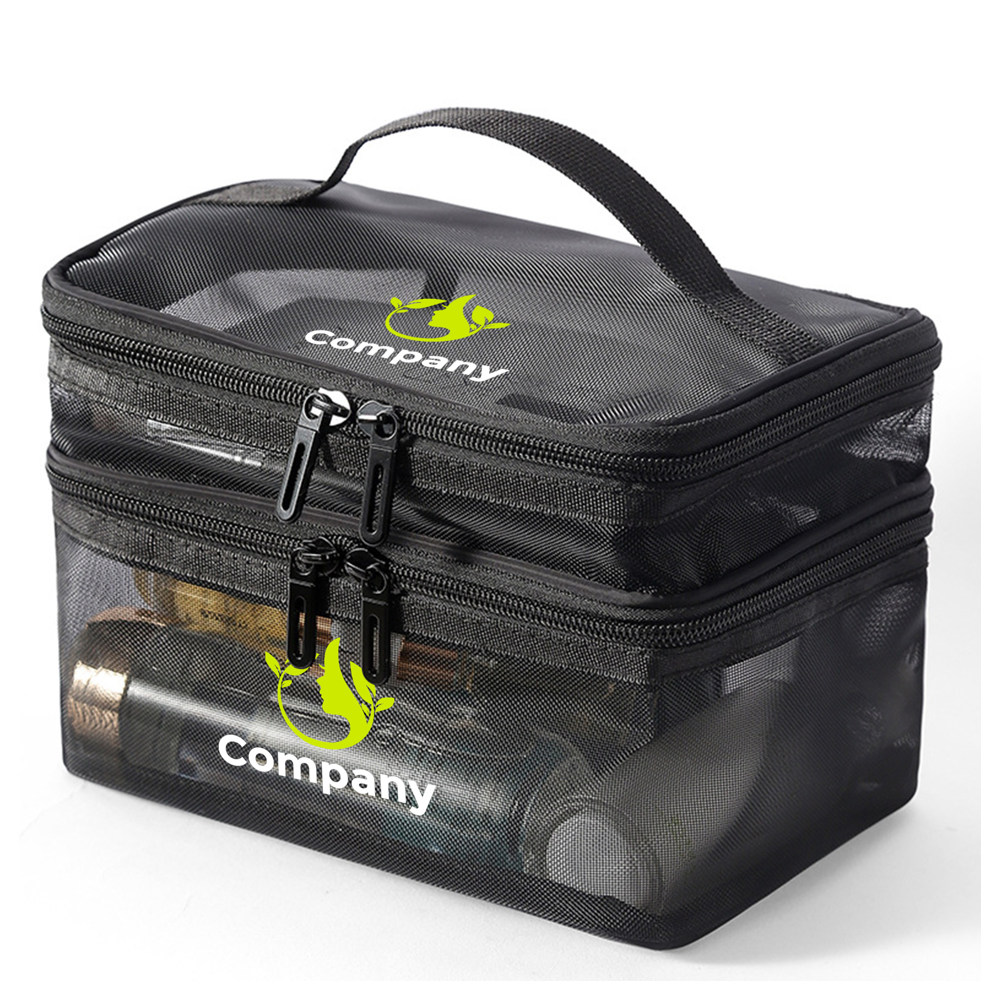 Get your branding seen with our new Nylon Mesh Sheer Double Layer Cosmetic Bag. Made from durable nylon mesh, this cosmetic bag offers superior air circulation and easy cleaning while keeping your essentials organized and accessible. Double layer design allows you to separate makeup, skincare, and tools efficiently. With screen print to highlight your design. Perfect for beauty brands, salons, or corporate events.