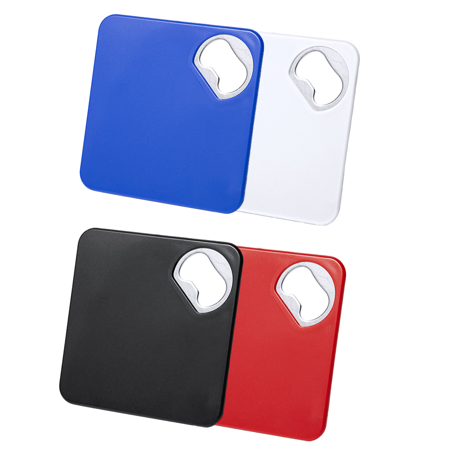 Original coasters with built-in metal opener in a wide range of bright tones.