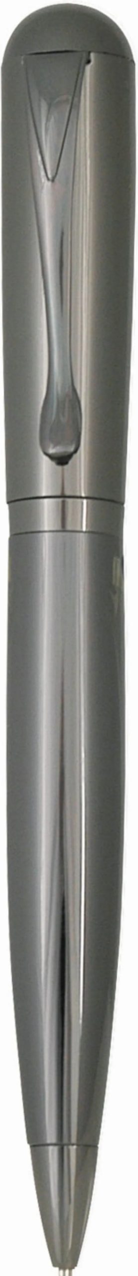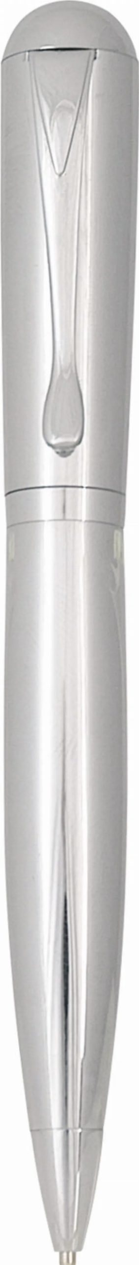 An elegant chrome twist action ball pen with black Parker style refill.