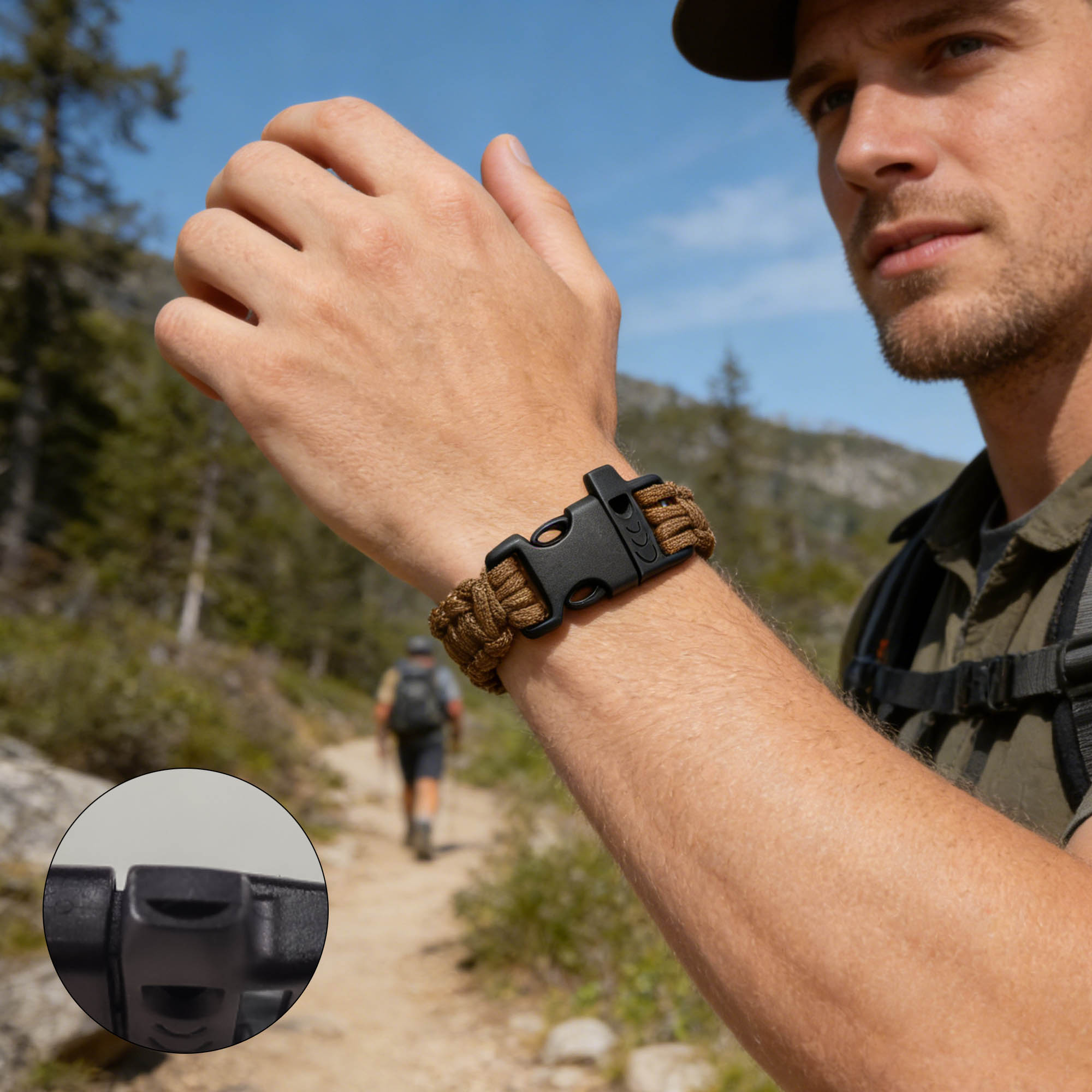 Stay safe on every adventure with our Paracord Bracelet With Whistle. Made from durable polyester, it’ s built to withstand the toughest trails. We offer custom engraving on the buckle. Whether you’ re hiking, camping, or exploring, this bracelet gives you both style and security. Lightweight, practical, and fully customizable. Don’ t just gear up—stand out.