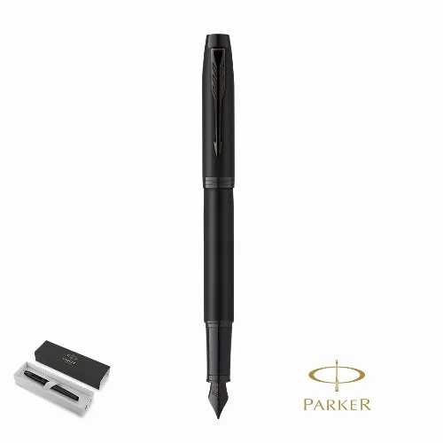 Parker fountain pen IM Achromatic, made in stainless steel with matte black lacquer finish and blue ink.