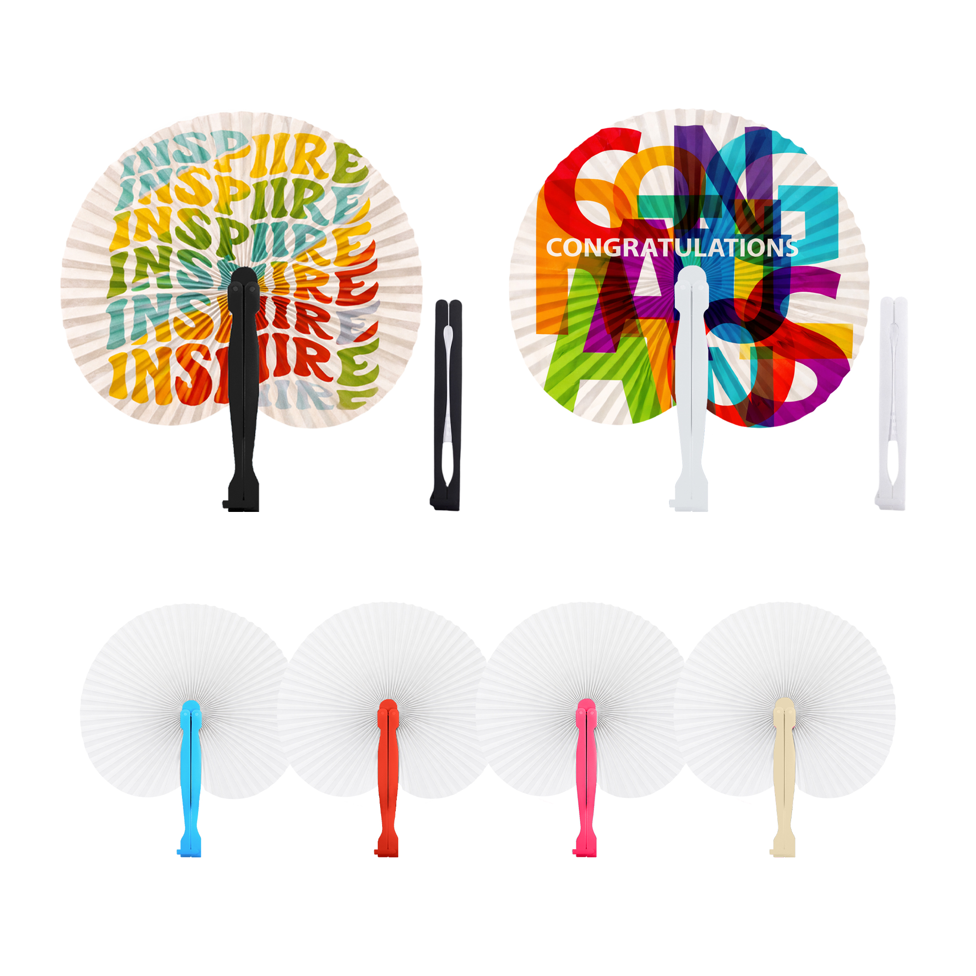 Promote your brand with our Peach Shape Plastic Handle Paper Fan, featuring a special peach shape. Crafted from paper and PVC materials, our fan is available in 6 handle colours. Personalise the fan through CMYK to showcase your logos or brand messages. Ideal for outings, tourist souvenirs, or promotional giveaways, our fan boosts your brand visibility.