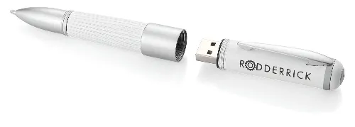 Modern designed ribbed pen with screw out USB, available in white and black