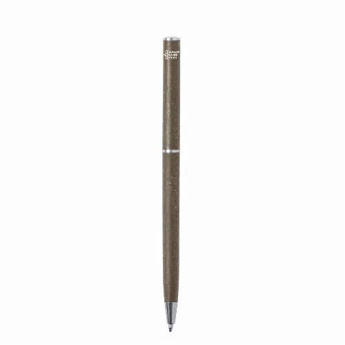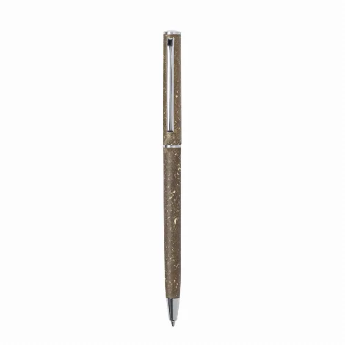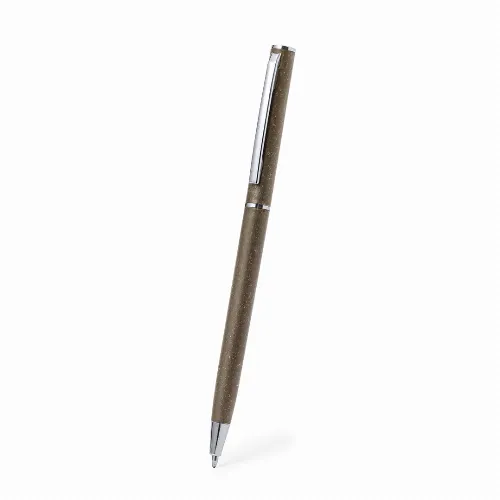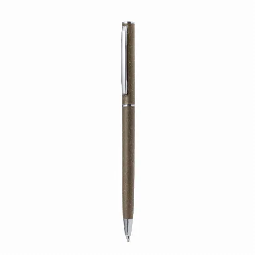 Metal clip and chrome plated fittings., with twist mechanism and blue ink. Sugar cane logo and available in a natural colour.Sugar cane fibre is a natural material that is made from biodegradable materials obtained from the fibrous plant residue after the extraction of sugar cane juice. It is a resistant material, sustainable in style and environmentally friendly.